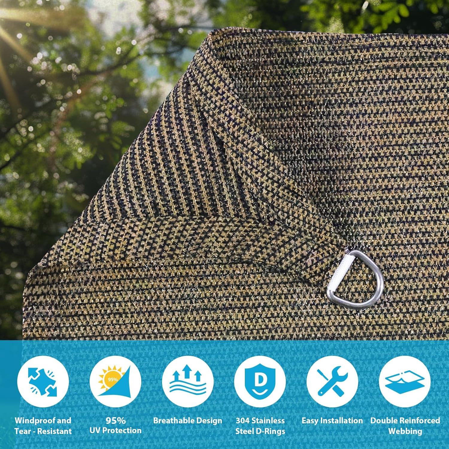 Material: Crafted from 185 GSM HDPE, blocking up to 95% of harmful UV rays while allowing airflow. Durable stitched edges and 304 stainless steel D-rings ensure strength and longevity