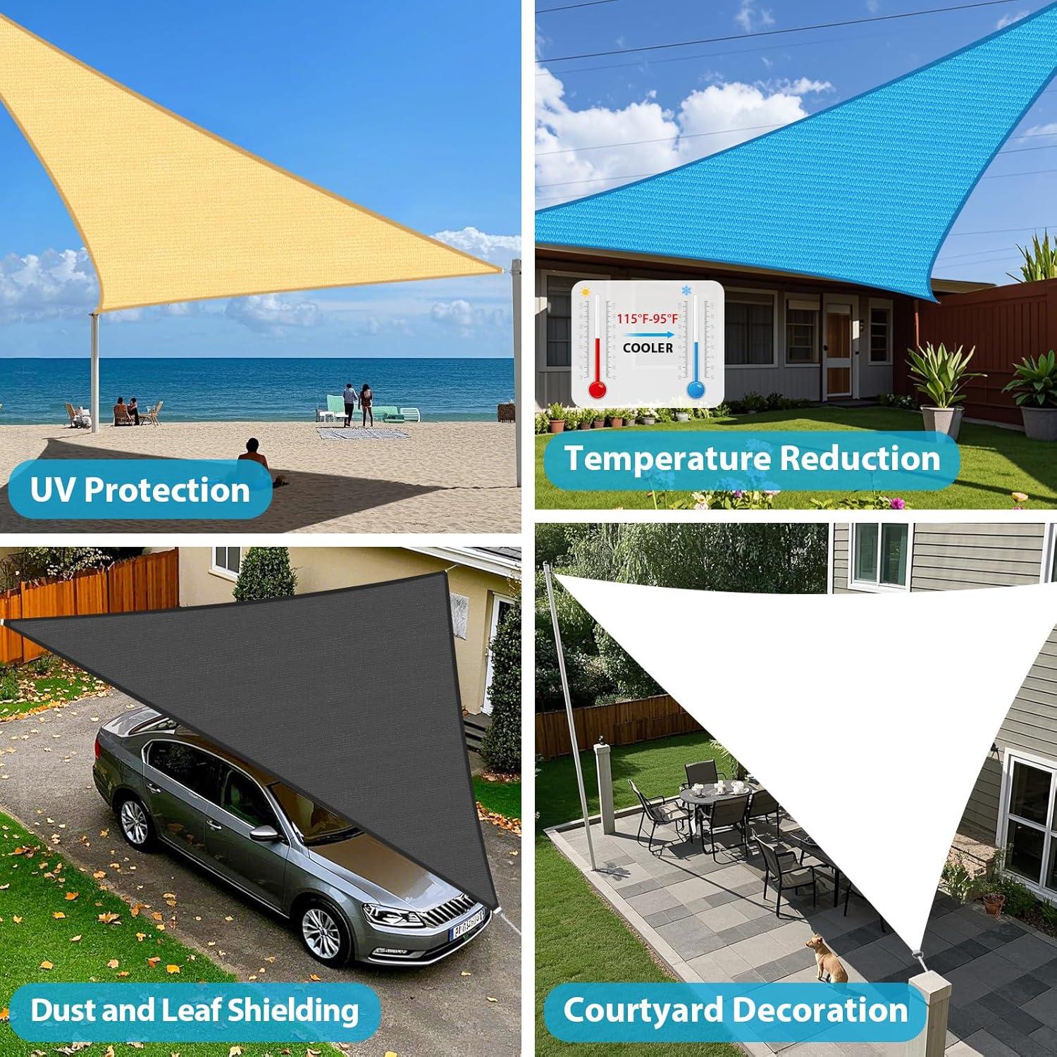 Application: Suitable for patios, lawns, gardens, BBQ areas, parks, pergolas, pools, and carports. Combining functionality and aesthetics, the shade sail is an ideal shading solution