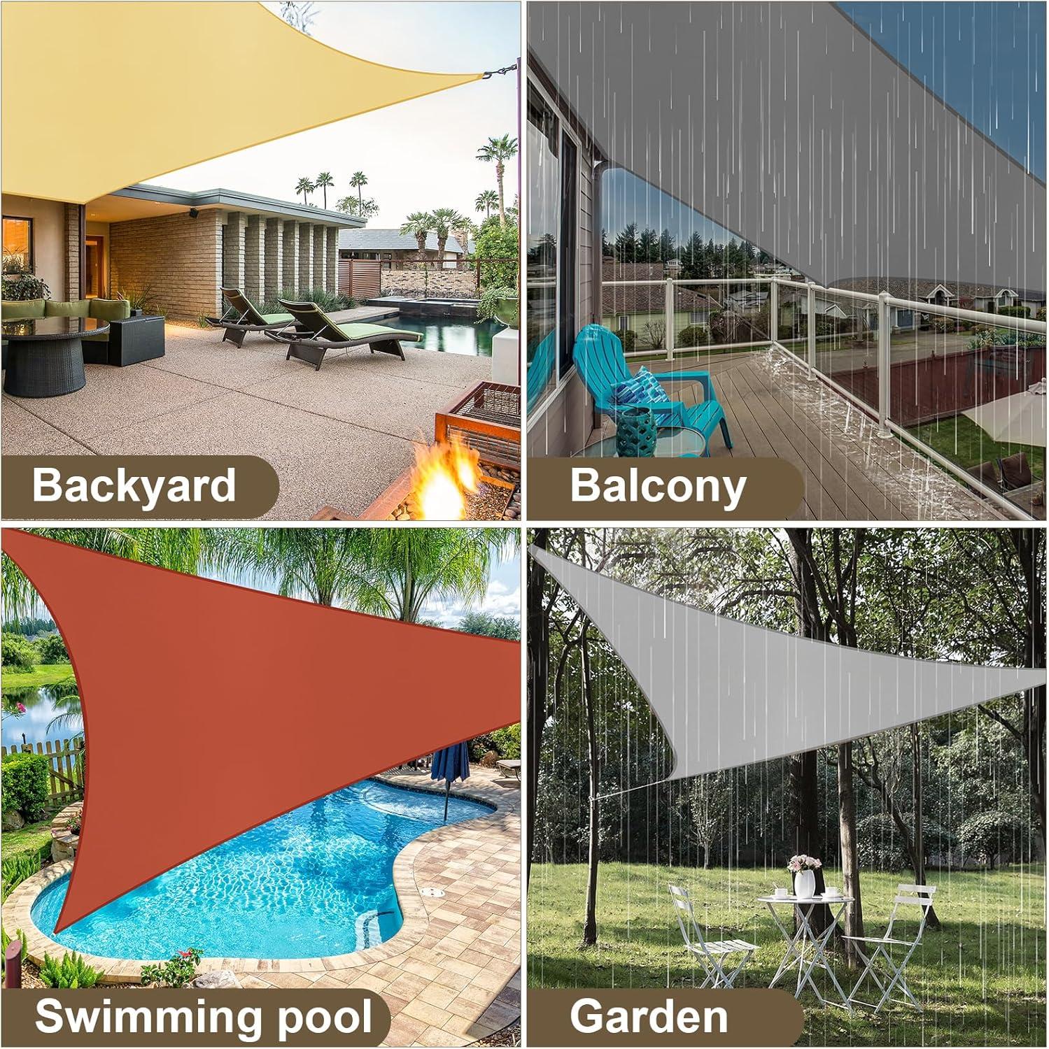 Versatile Outdoor Use: Designed for diverse outdoor settings such as patios, gardens, pools, decks, and pergolas, our waterproof shade sail offers reliable sun protection and rain resistance, making it ideal for year-round use.