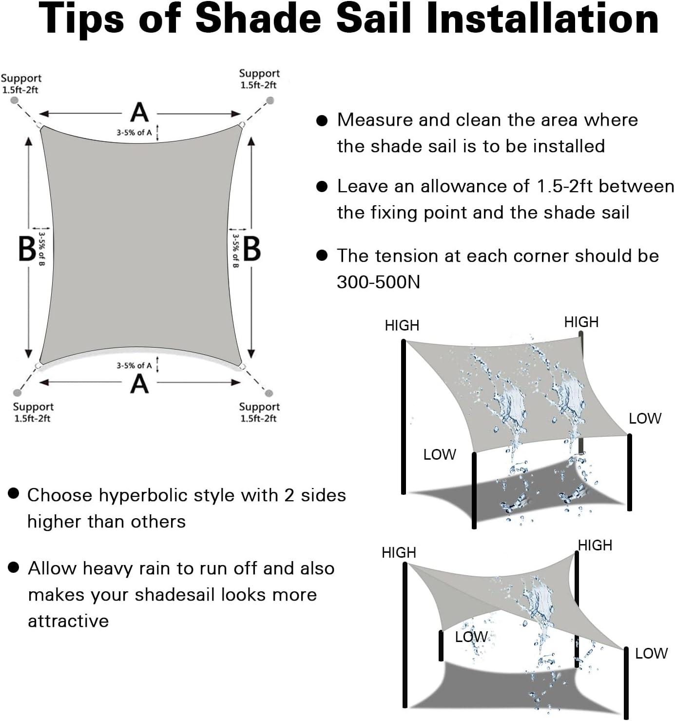Amagenix Waterproof Sun Shade Sails Canopy, Gray Rectangle Outdoor Canopy 12’x16′ UV Block Awning Shelter for Patio Garden Backyard Activities, (WPSR121640)